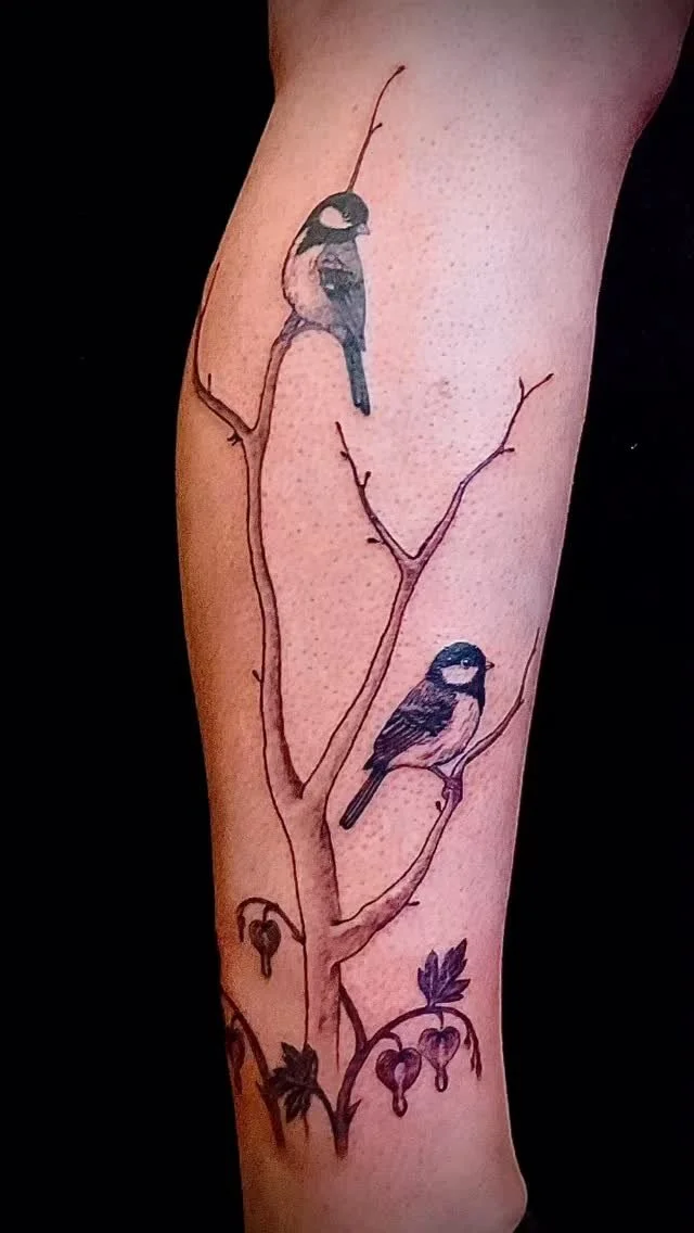 My style is that of a street artist, fine line, florals, color works and black and grey are a lot of the work I often find myself doing. I really enjoy traditional and unique styles as well as creating something particular to the client’s ideas.