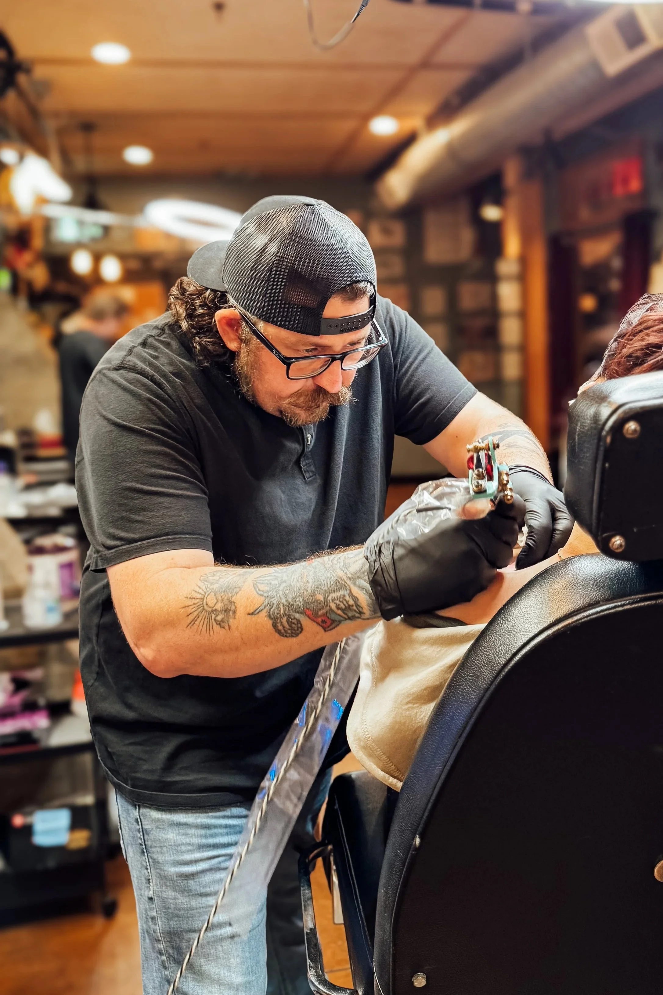 Each artist books their own appointments individually. Schedule with them directly from their contact information located in their profile on this website or come by the shop for an easy consultation.